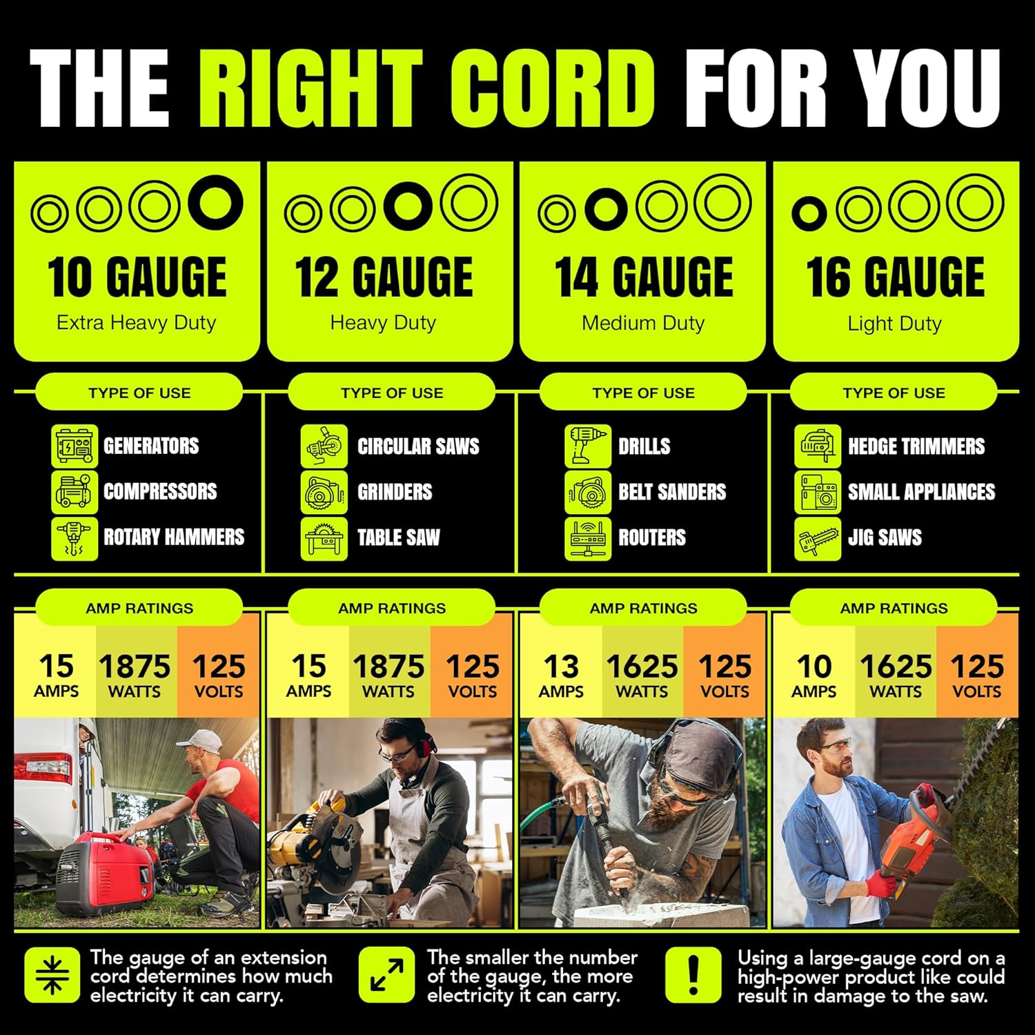- POWERFUL: This 100FT, 16 Gauge 3-prong SJTW, Yellow extension cord is designed for extra safety and durability, The cable extension electrical cord supports 10 AMP, 125 Volts, and up to 1250 Watts, ensuring robust performance for high-demand equipment, this 1 Pack embodies reliability, quality, and the grounded power to handle your most challenging projects with ease.