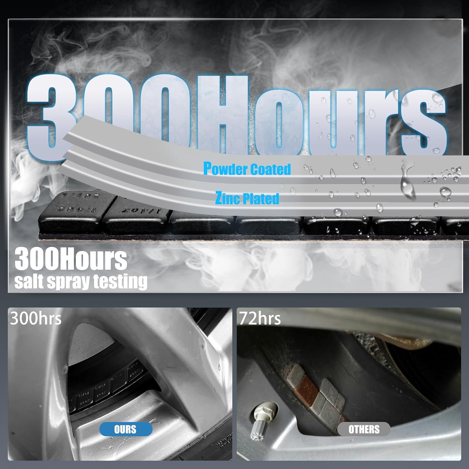 - High quality for durability: The balance are treated with a powder coating to prevent corrosion and rust, and can withstand any weather conditions your car normally experiences. Meanwhile, our wheel weights feature rounded corner stamping to easily contouring any wheel shape and size