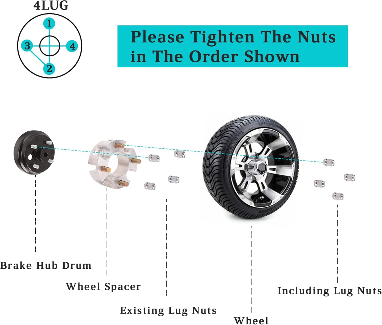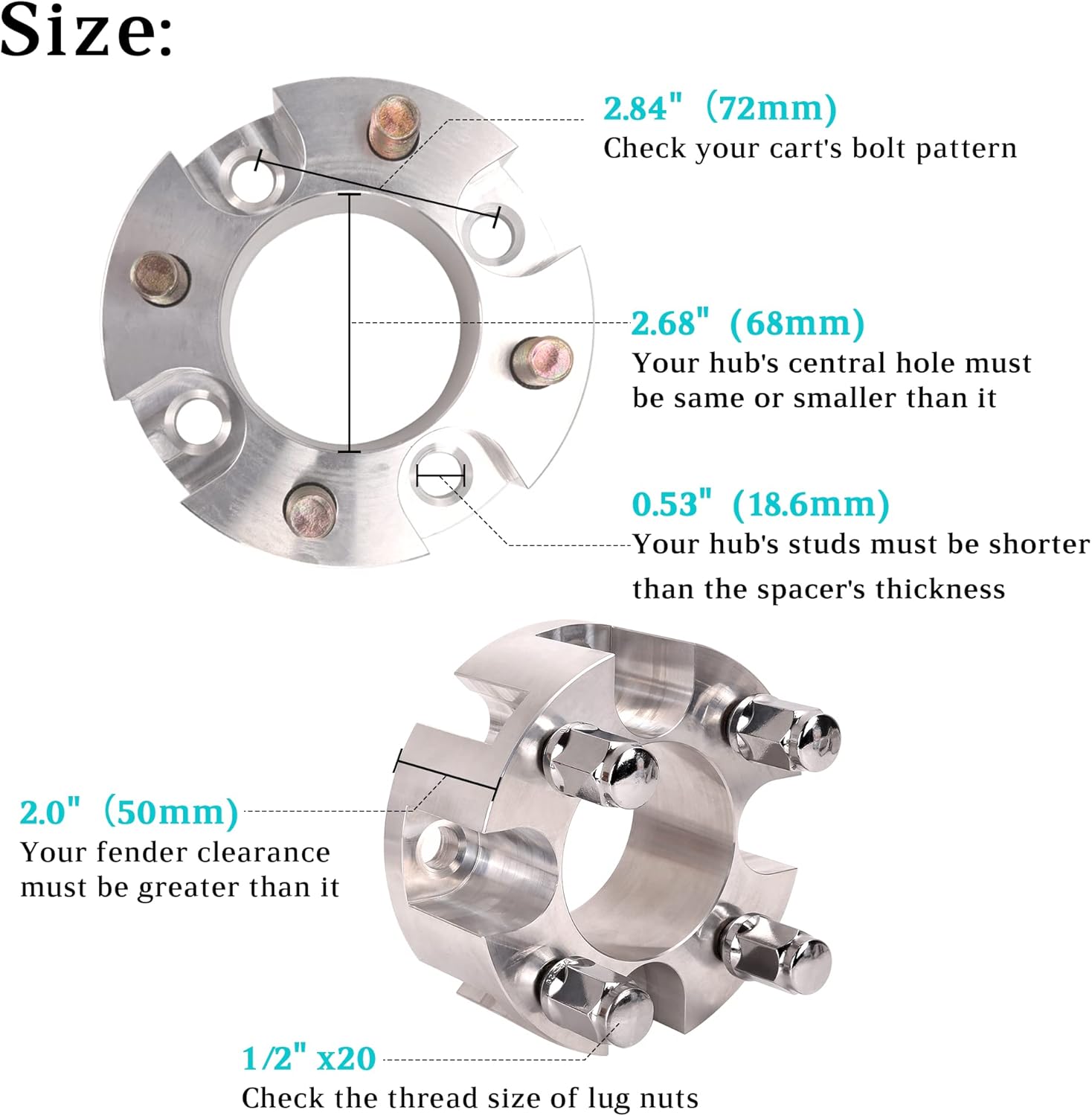10L0L Golf Cart Wheel Spacers Adapters 2 Inch for EZGO Club Car 4 Lug (4x4 Bolt Pattern, 68mm Hub Bore, 1/2-20 Studs) - 4 Pack