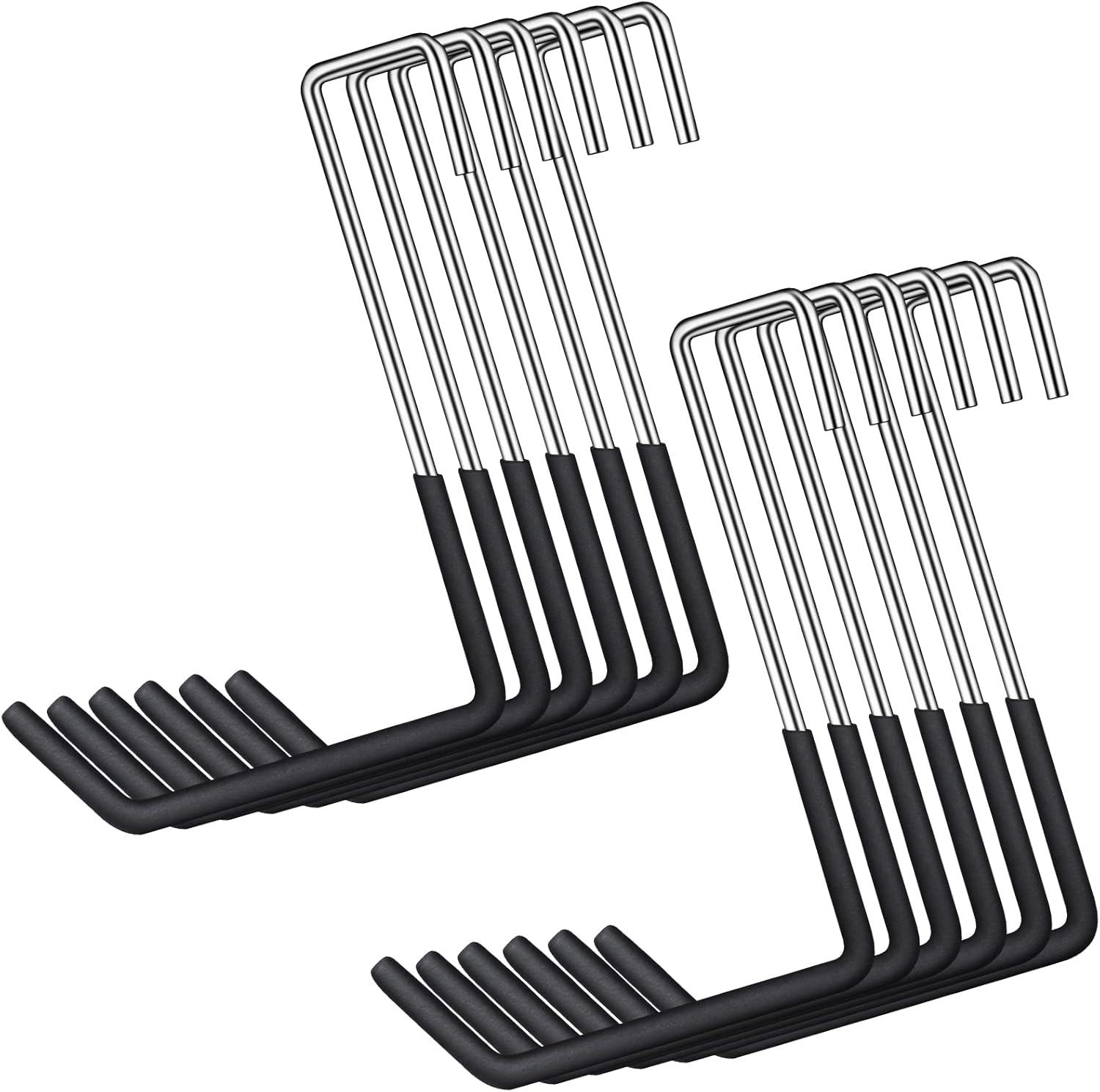 12 Pack Heavy Duty Rafter Hooks for Hanging Vinyl Coated Large S Hooks for Hanging Ladder Bike Hangers Garage Storage Organizer Black