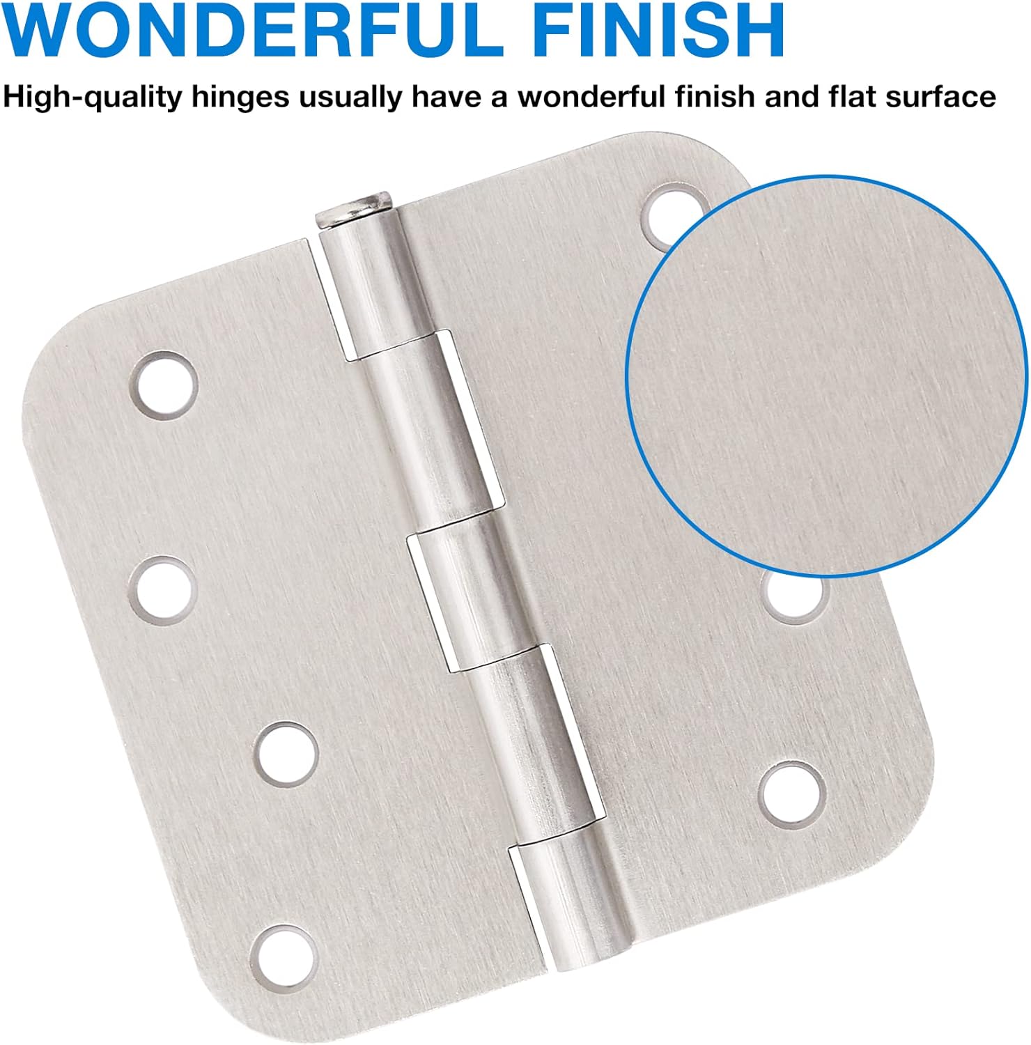 - Nickel door hinges 4" rounded corners with 8 holes for front door, cabinet, wooden box. Plain bearing hinges is including 96 free screws for quick and easy installation. It can be rotated 270 degrees.