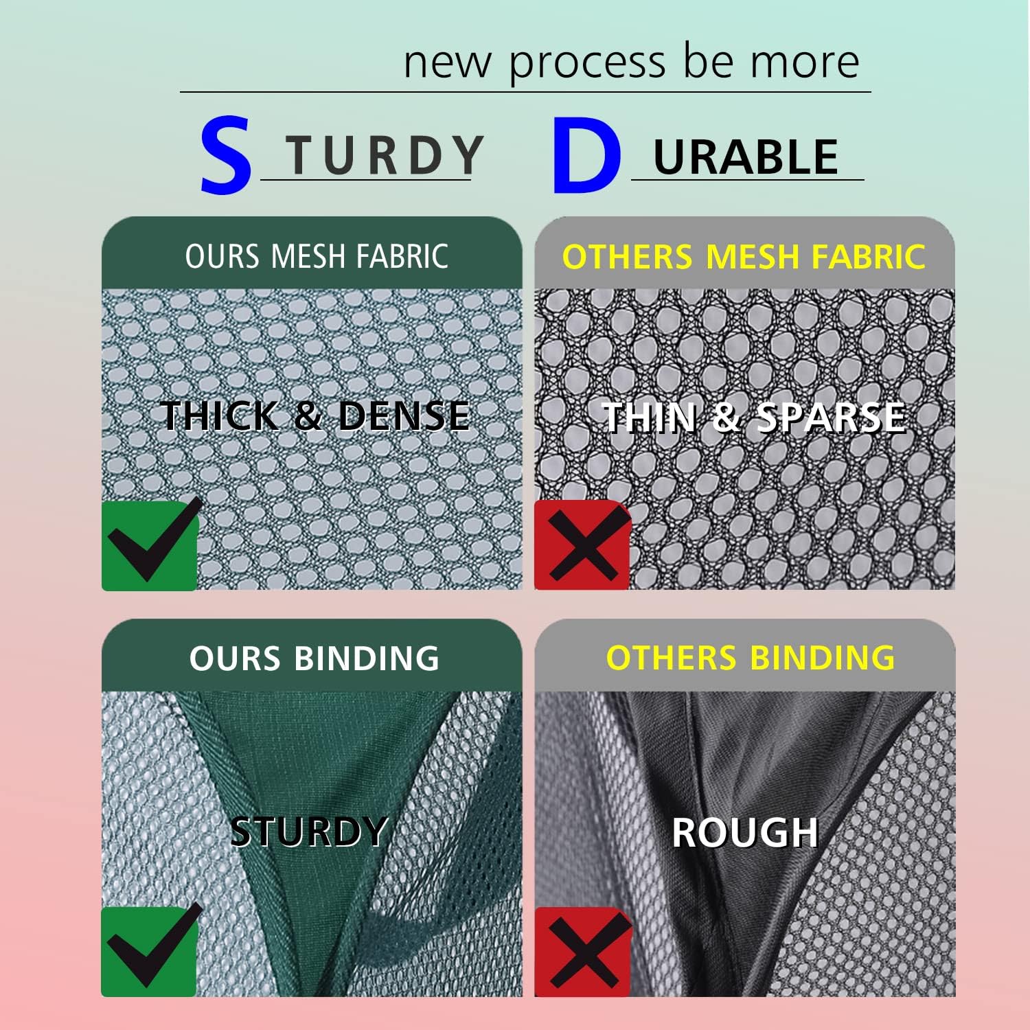 - STURDY MESH CONSTRUCTION - Thick and dense mesh construction made by fabric material. It's more sturdy than others,and allows air to circulate in order to eliminate moisture and odors.
