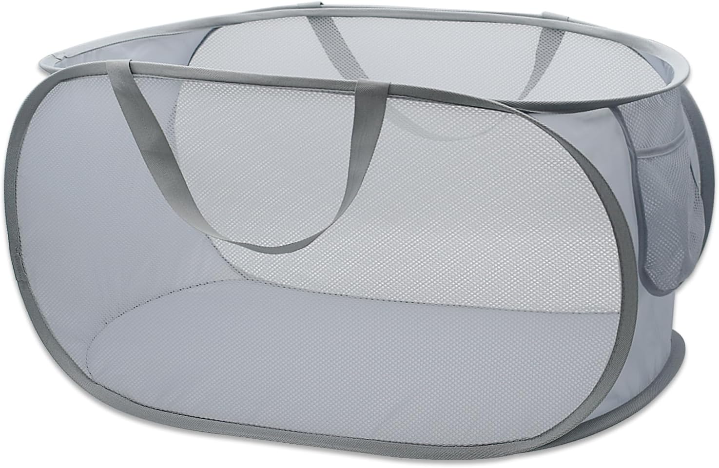 HONOMA Sturdy Mesh Laundry Hamper Basket Bag,Pop up Basket with Side Pocket for Laundry Room, Bathroom, Kids Room, College Dorm or Travel (Pop Horizontal, Grey)