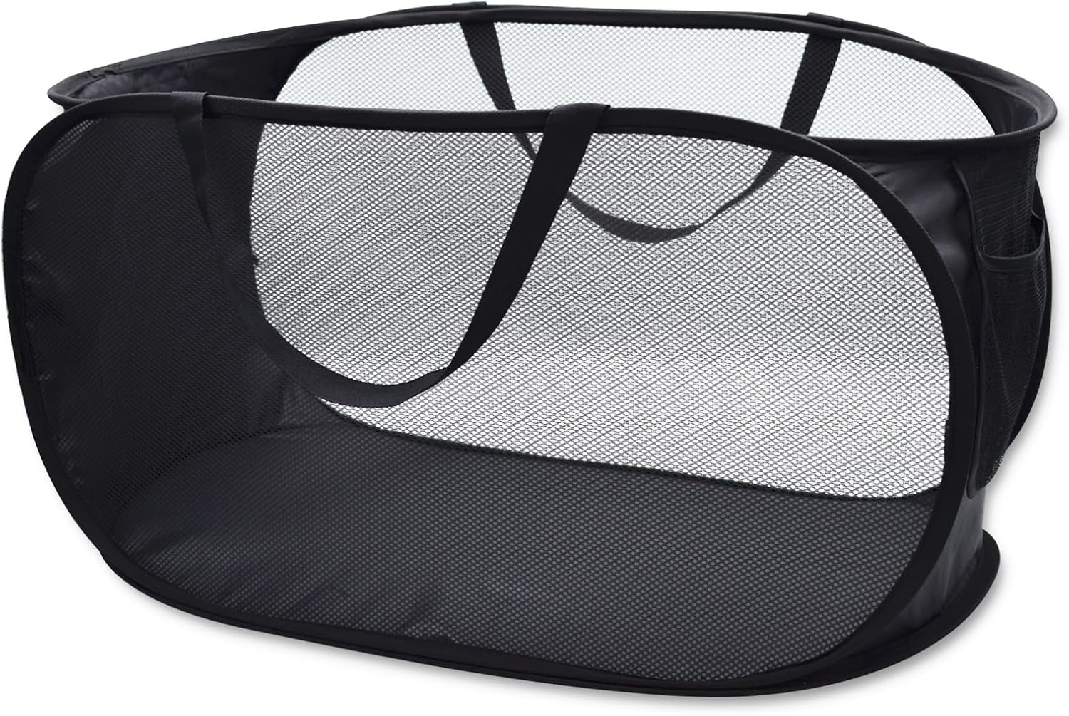 HONOMA Sturdy Mesh Laundry Hamper Basket Bag,Pop up Basket with Side Pocket for Laundry Room, Bathroom, Kids Room, College Dorm or Travel (Pop Horizontal, Black)
