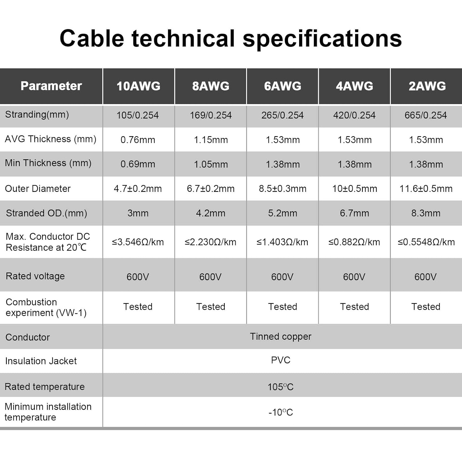 - Wide temperature range: -76°F to 221°F (-60°C to 105°C), rated voltage is 600V, resistant to acid, alkali, oil and strong oxidation. Chemical, flame, aging, weather resistant and electrically insulating.
