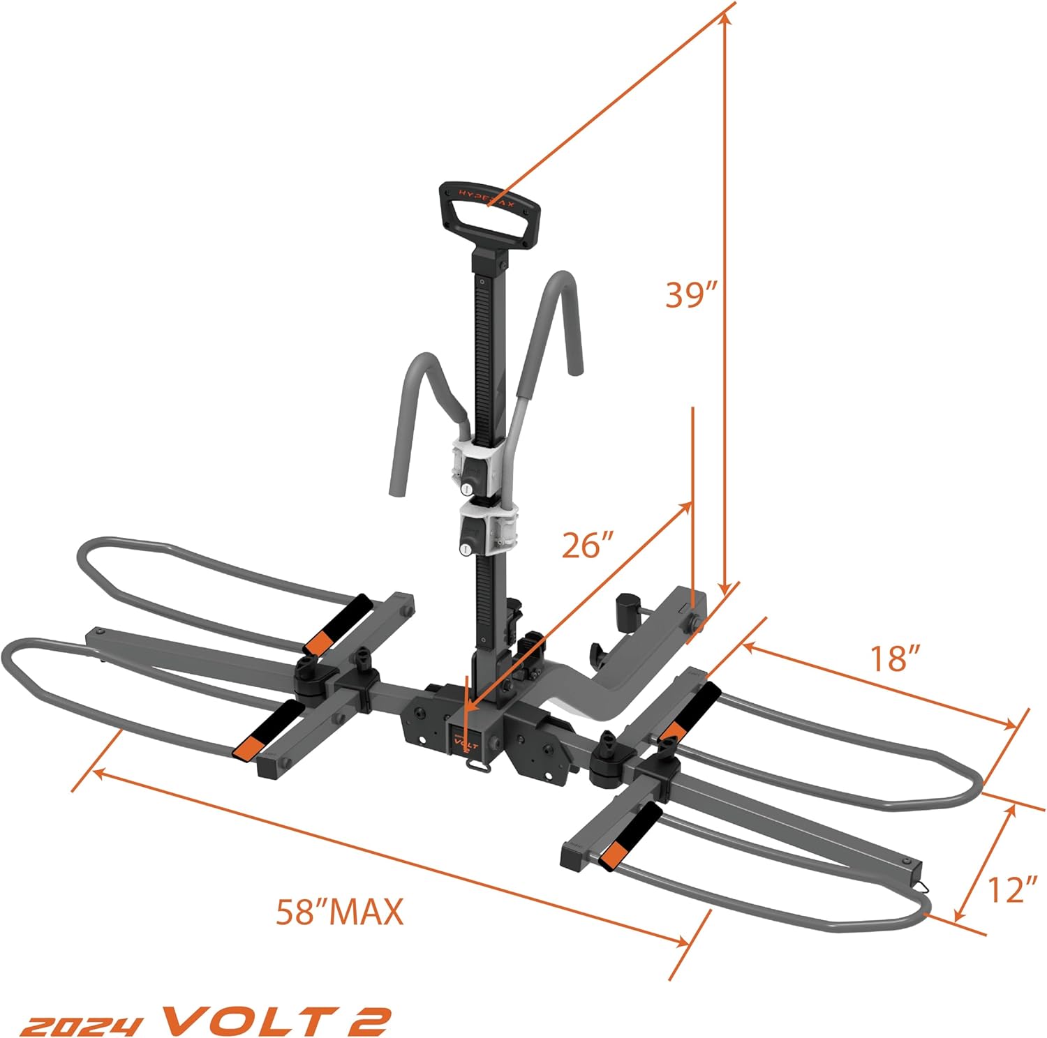 HYPERAX 2024 Volt 2 -E Bike Hitch Mounted Platform Style 2 Bikes Carrier for Car, SUV, Trucks, Sedan, Tilting e-Bike Rack for Hitch Fits Up to 2 X 80 lbs Bike with Up to 5" - NO RV USE!