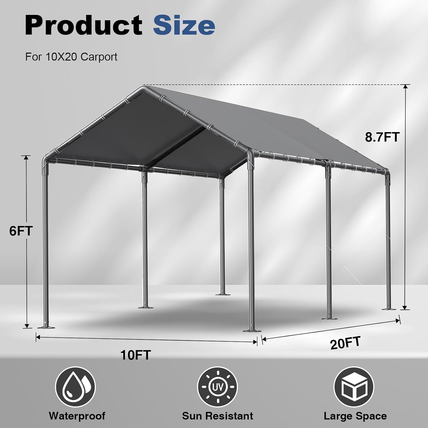 - 【Quick & Easy Set Up】The carport is easy to assemble. You’d better to have an assistant to help, no additional tools of the car port are required, just keep the frame steady when assemble the car tent steel tube and cover.
