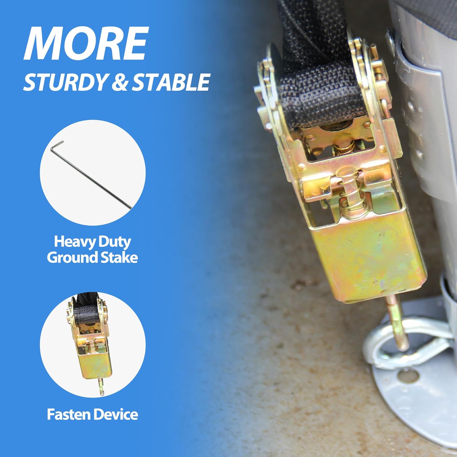 - βFor long term use and safety, please make sure to use rope, ground anchors for stability.If you want to place it on the grass for a long time, you need to pour cement around the legs and fix it with expansion screws to ensure stability. (Expansion screws need to be purchased by yourself. )