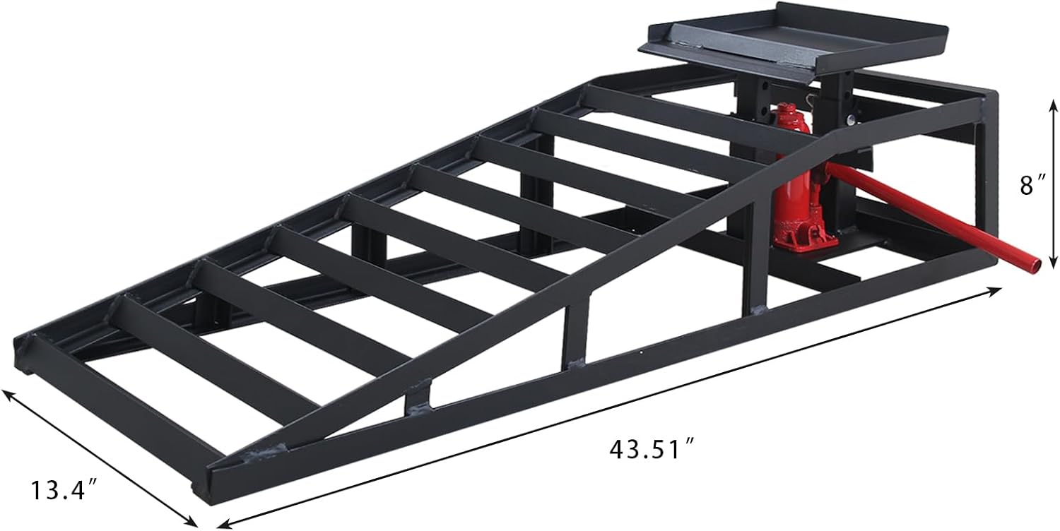 - Thoughtful Design: We considerately provide two handles for convenient controlling the hydraulic jack, and trapezoidal hydraulic ramps are easier to stack and store, and the detachable structure makes them relatively easy to use.