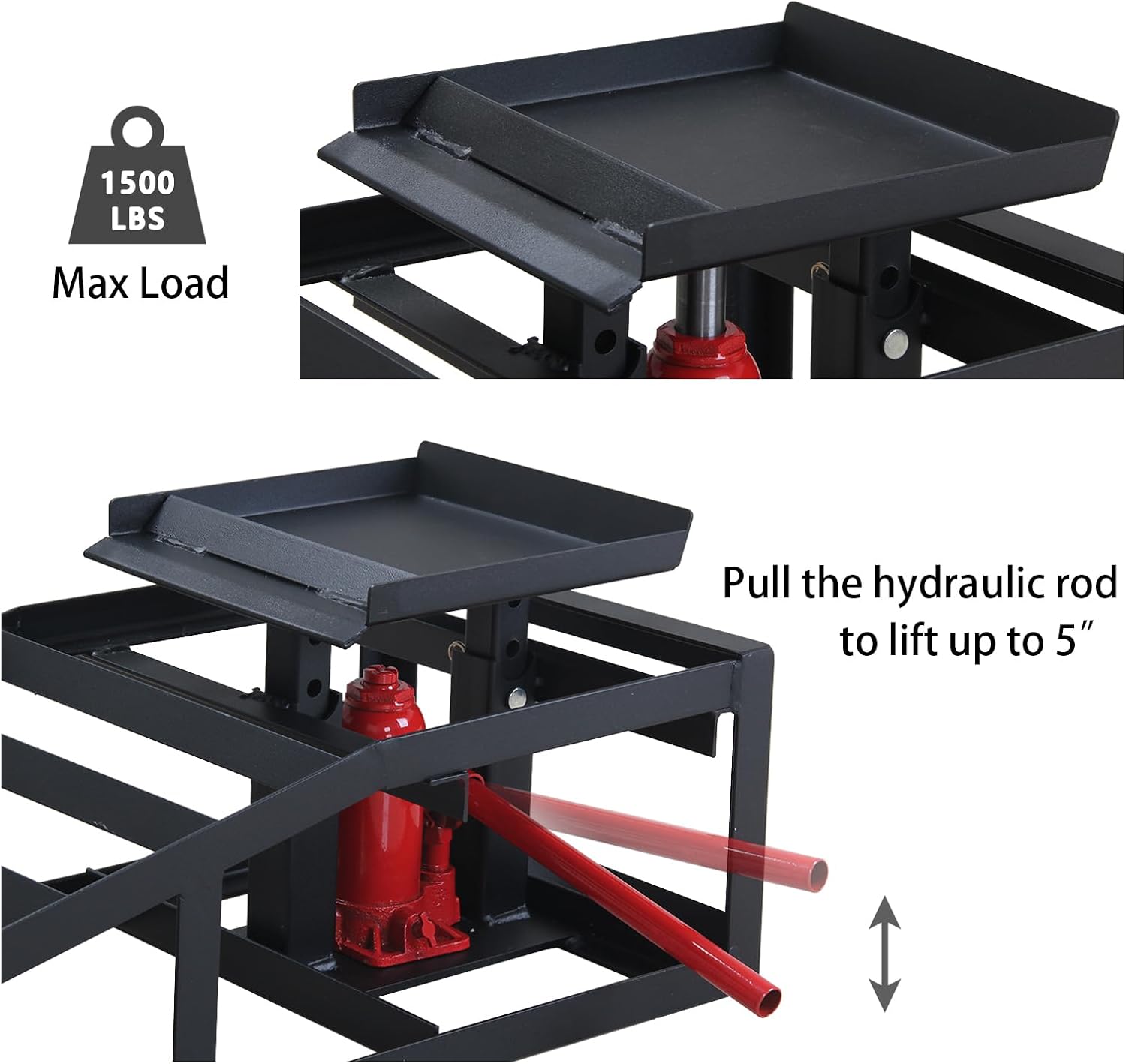 - 11000LBS Loading Capacity: We understand that heavy loads can make daily routine hard to carry out.Height-adjustable hydraulic ramp: 7.25"-13.5"(184-342mm).