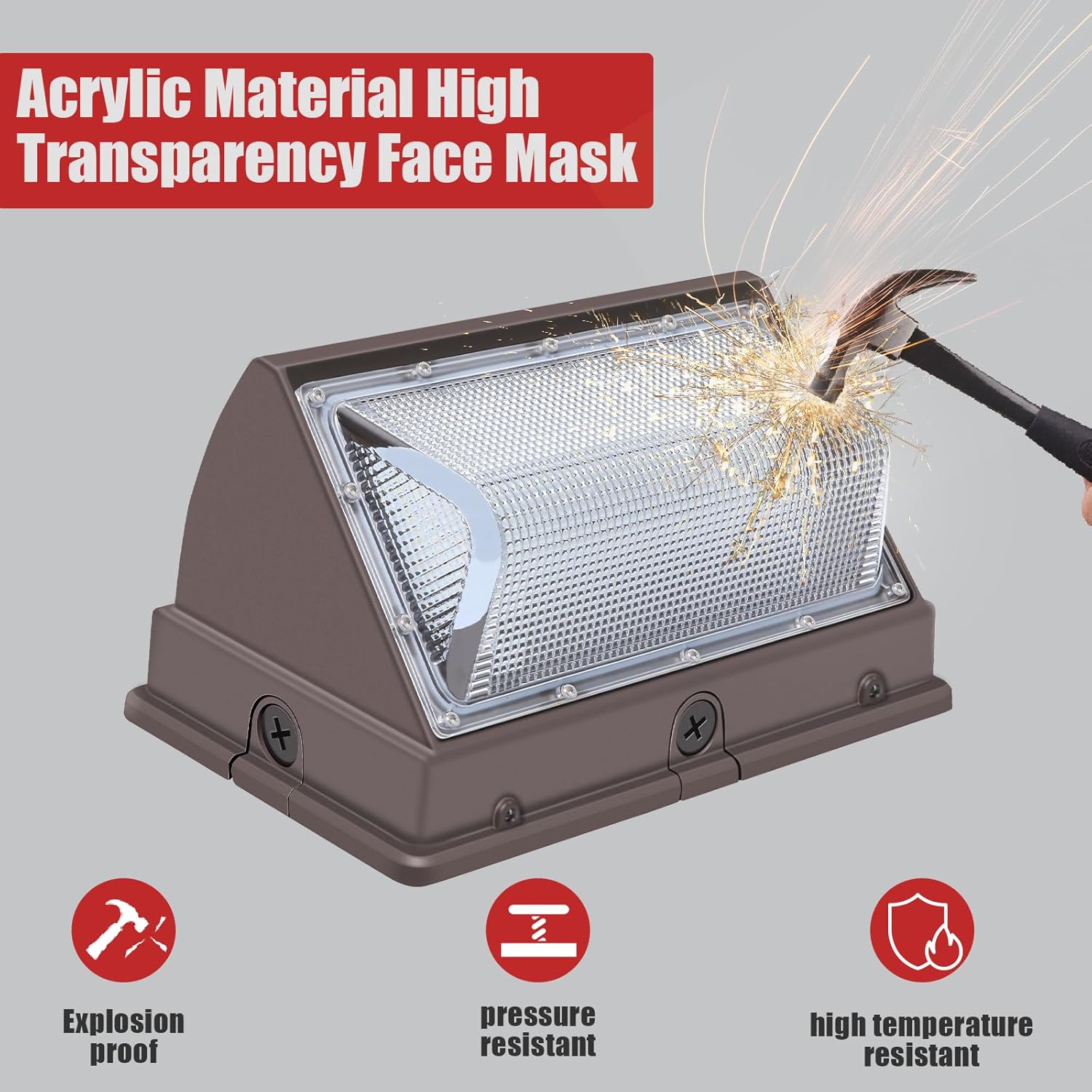 - Waterproof and Safe Lighting-Built in independent double power supply provides overload protection and short circuit protection. It does not contain harmful substances such as mercury, and is IP65 waterproof, ensuring that you can use it in damp, heavy snow, and rainy days. Wall Pack Led Lights Commercial can work stably in the temperature range of -4 ℉ to 113 ℉