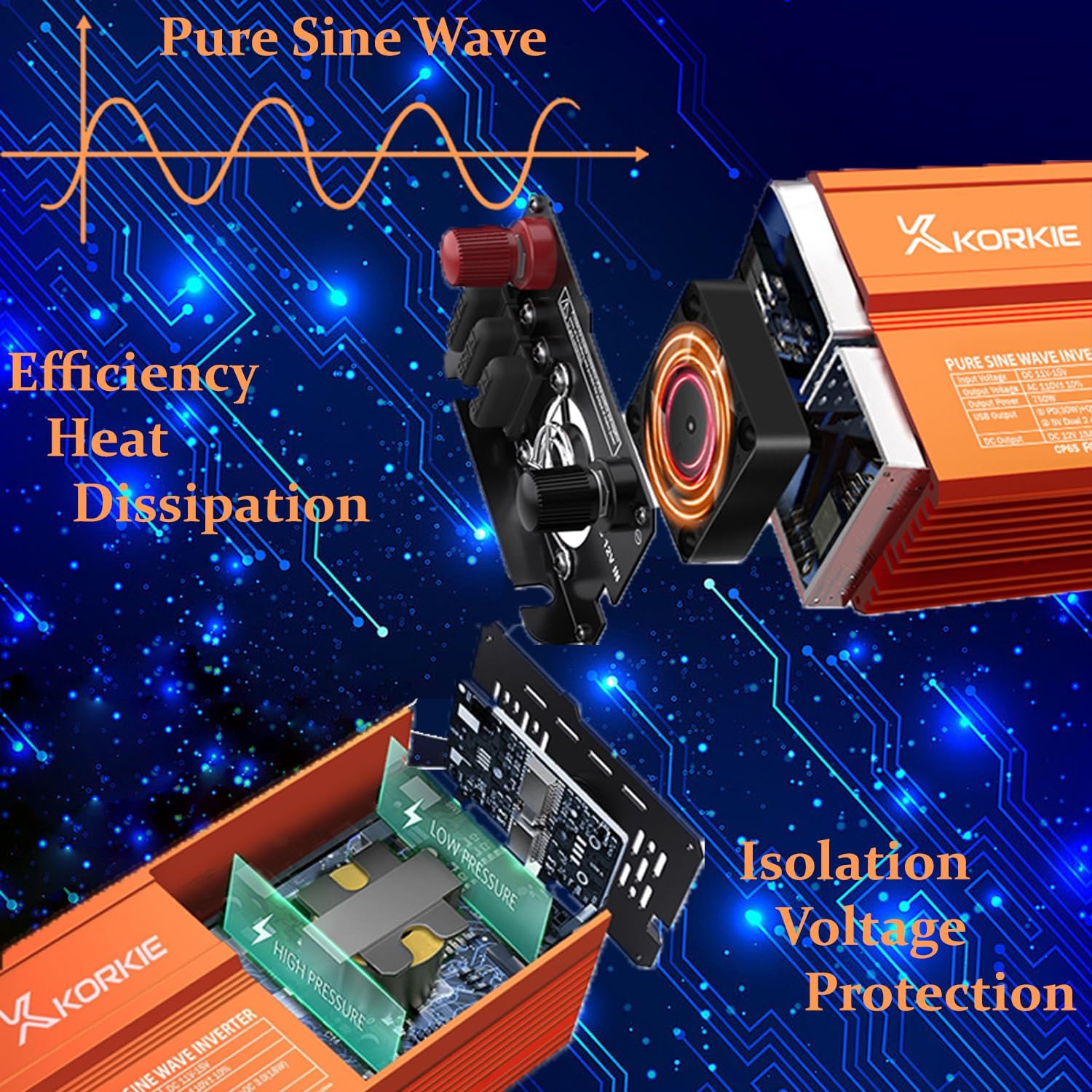 - 【Safety and Secure Inverter】: Built-in overload, over-temperature, short-circuit, and reverse polarity protection ensure your devices stay safe. Perfect for emergency situations or harsh conditions, so you can rely on it for both everyday use and extreme environments. Moreover, a pure sine wave inverter provides a more stable and cleaner power source, thereby extending the life of your electronic devices