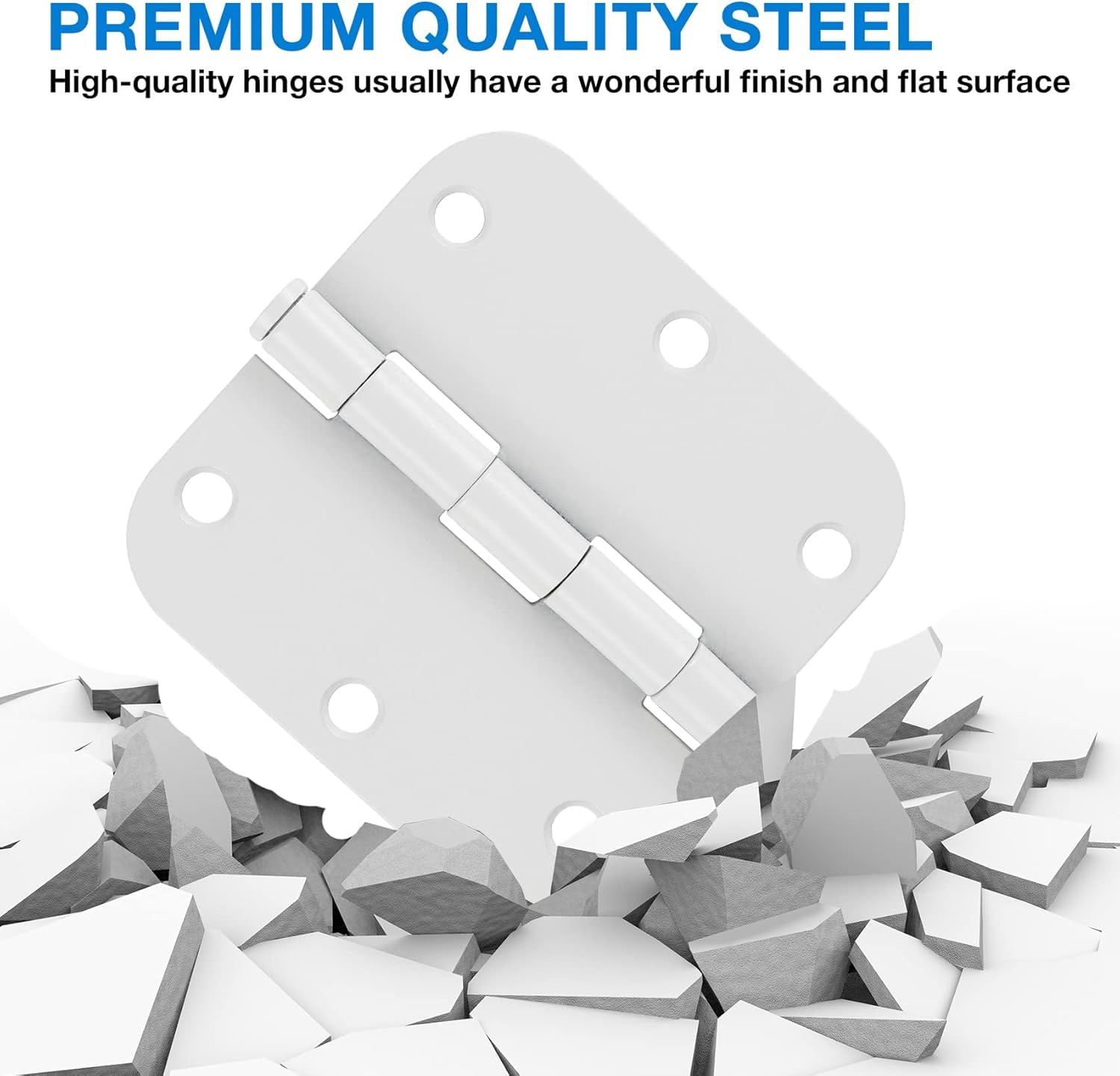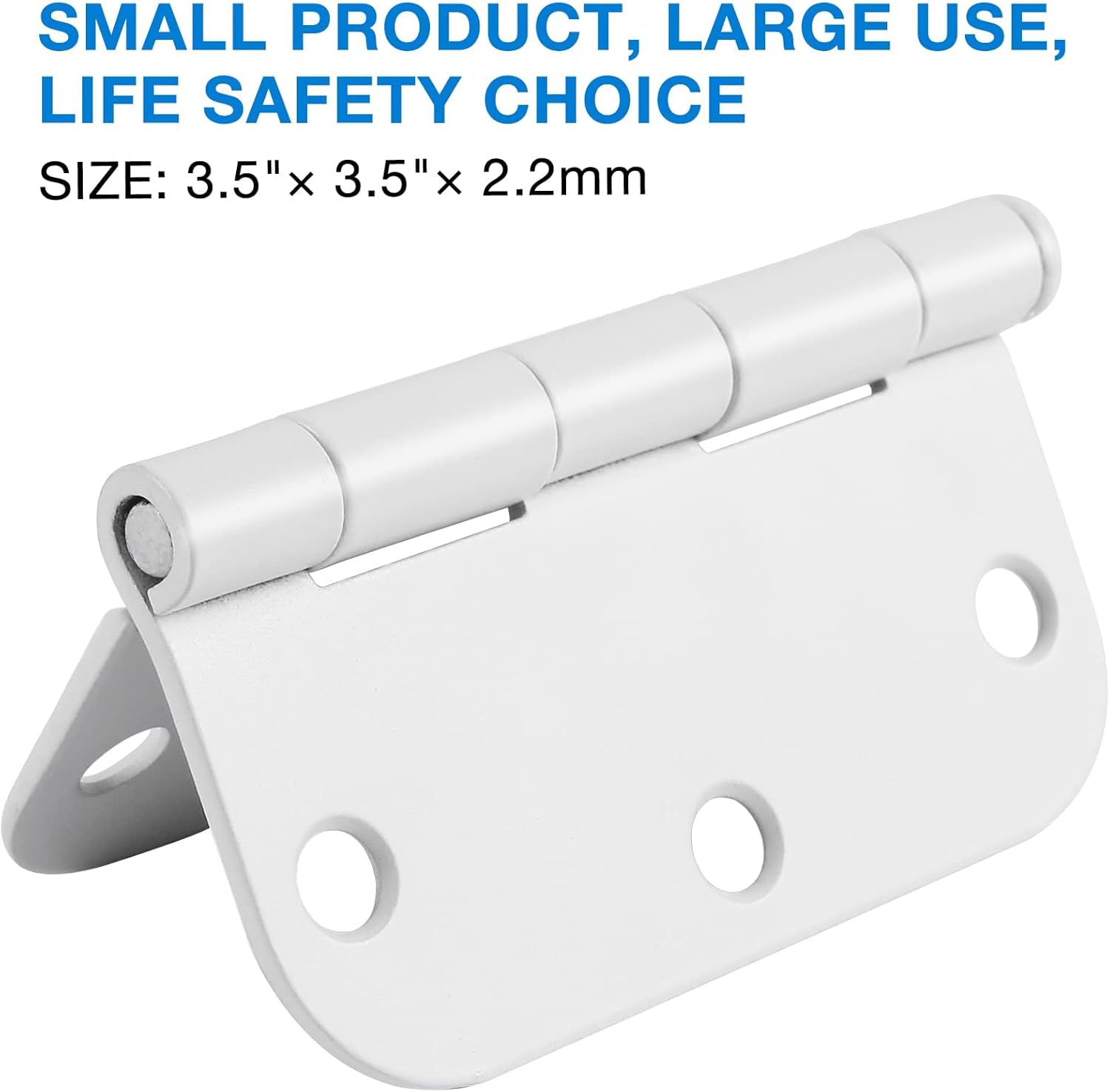 - 3.5 in door hinges white with 5/8 rounded corners and 6 holes for front door,cabinet,wooden box.Indoor door hinge white Includes 72 free short screws and 12 extra long screws for quick and easy installation.white door hinges can be rotated 270 degrees.The extra long screws will come in handy specially when replacing existing hardware using the same hole pattern.