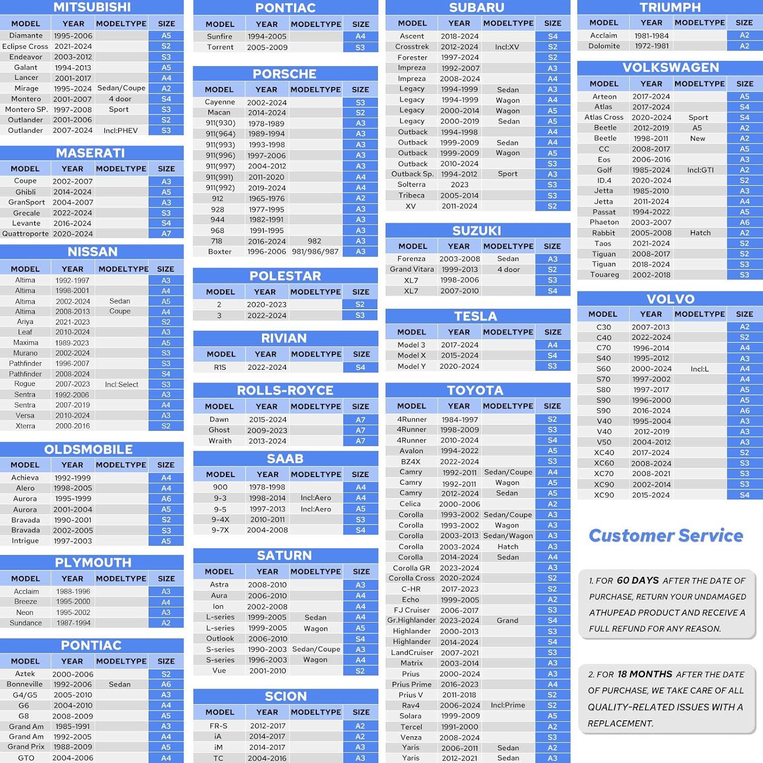 - ăHow to Choose SizeăATHUPEAD waterproof car cover provides an accurate size chart (Figure 4-6), find your brand/model and year of manufacture in the size chart to match the correct size.