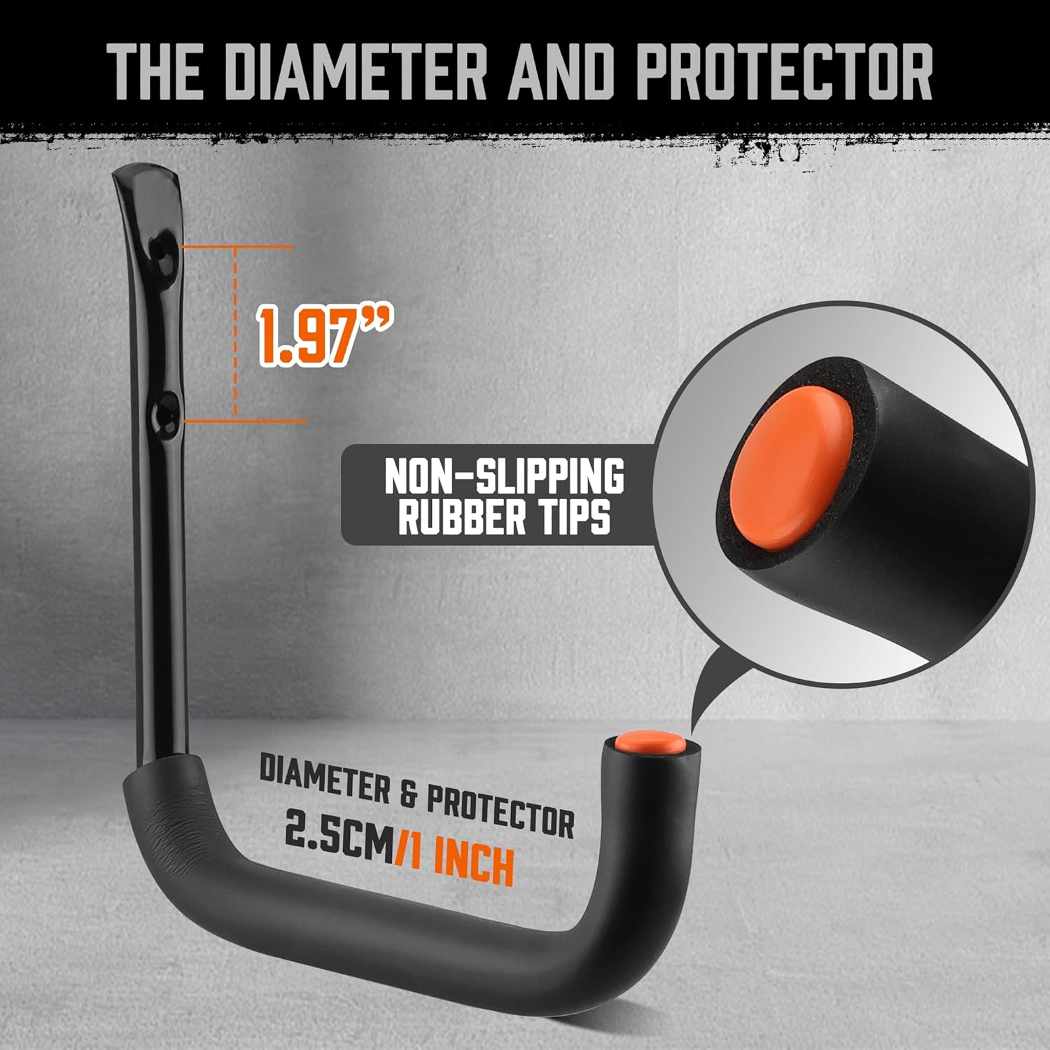- The heavy-duty hook for garage storage is 9 inches long and more practical. There is a layer of EVA protective layer on the surface of the metal tube to ease and protect your items.