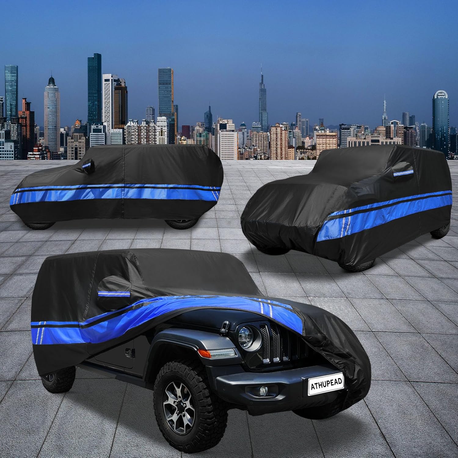- ăAll-Weather ProtectionăATHUPEAD for Jeep Wrangler cover all-weather provides comprehensive protection for your vehicle. Whether it is bird droppings, pollen, and tree sap in spring, heavy rain, dust and ultraviolet rays in summer, fallen leaves, acid rain, small animals in autumn, blizzards, hail, and other extreme weather in winter. As long as you have ATHUPEAD all-weather car cover, you will say goodbye to those annoying things and enjoy the fun in different seasons.