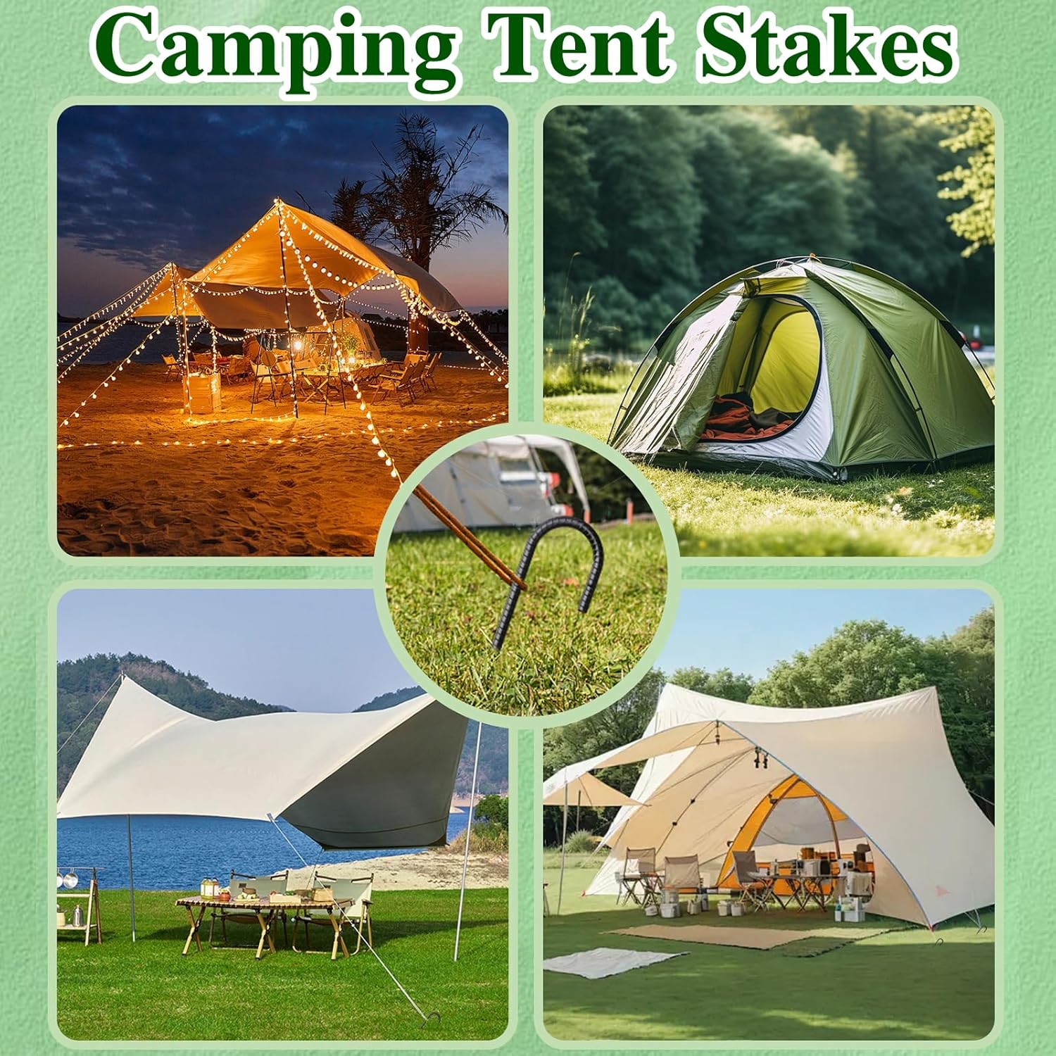 - 【SHARP END】The chisel point design facilitates easy insertion of the ground stakes into various surfaces, including dirt, grass, sand, hard soil, and rock. These tent stakes constructed from thick and sturdy metal steel. These stakes for outdoor decorations are resistant to deformation, which effectively minimizes movement even in strong winds.