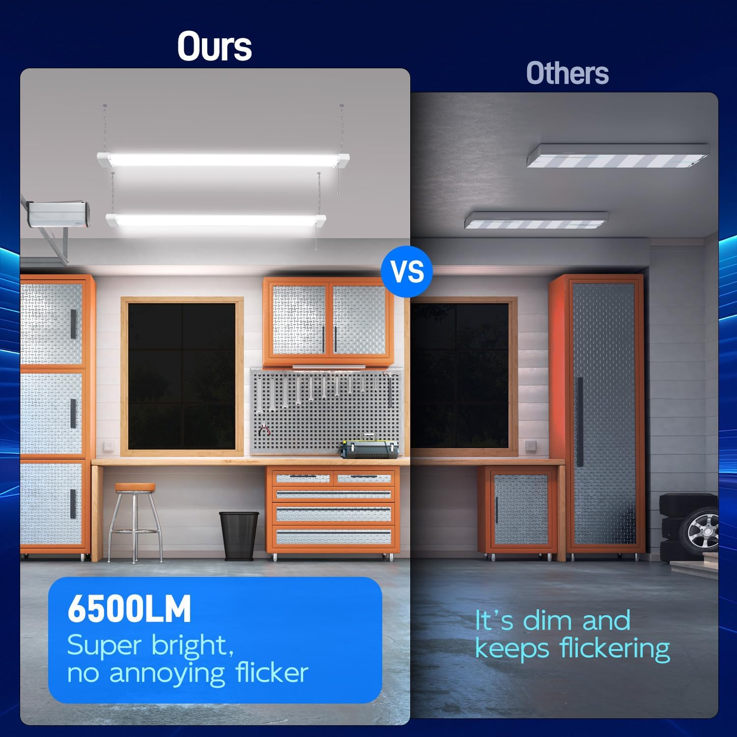 - ā Linkable - 4ft linkable led shop light use plug connection to connect up to 6 pcs together in your garages, workshops, workbench areas, storage areas, warehouses, basements, equipment rooms, etc.