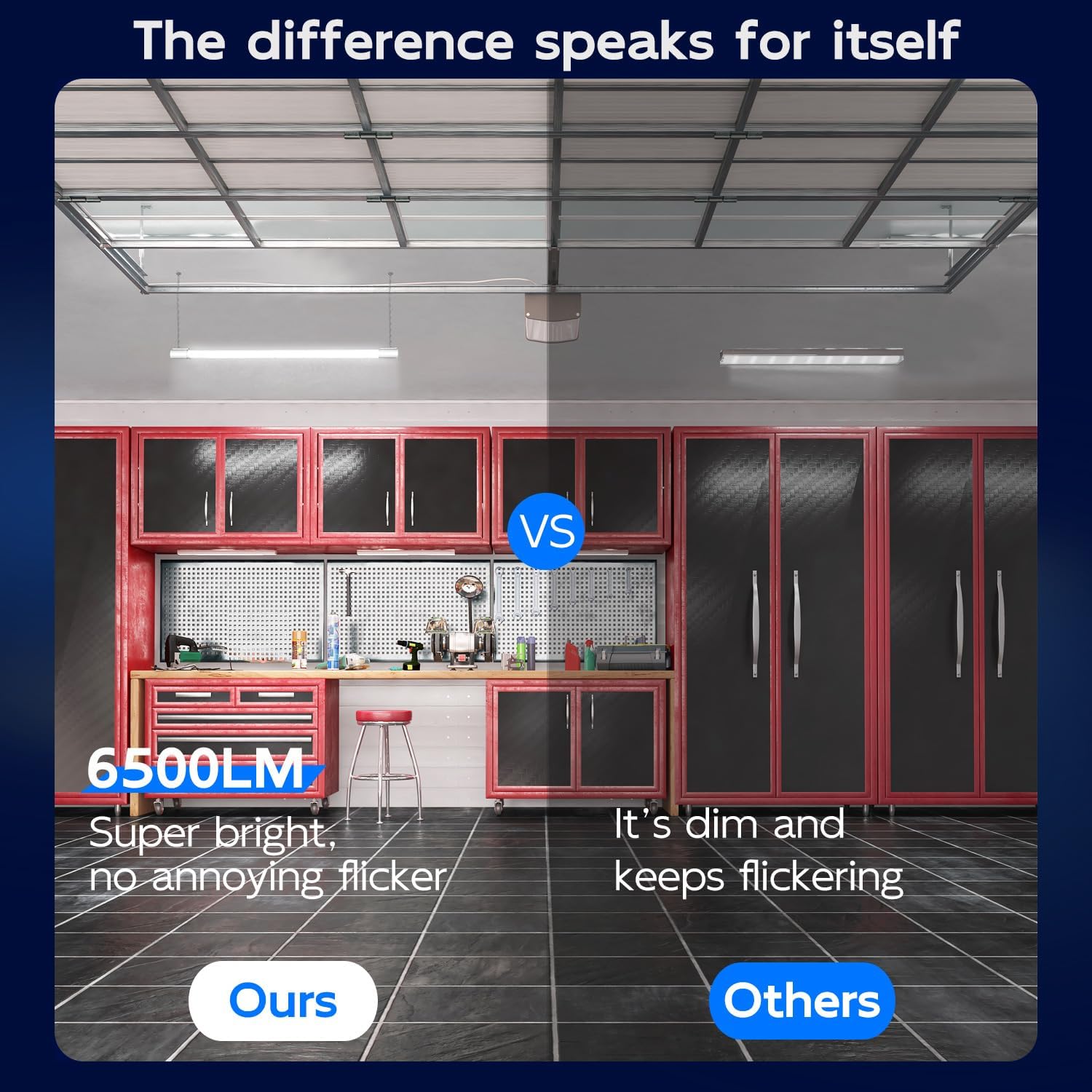 - ā Linkable - 4ft linkable led shop light use plug connection to connect up to 6 pcs together in your garages, workshops, workbench areas, storage areas, warehouses, basements, equipment rooms, etc.