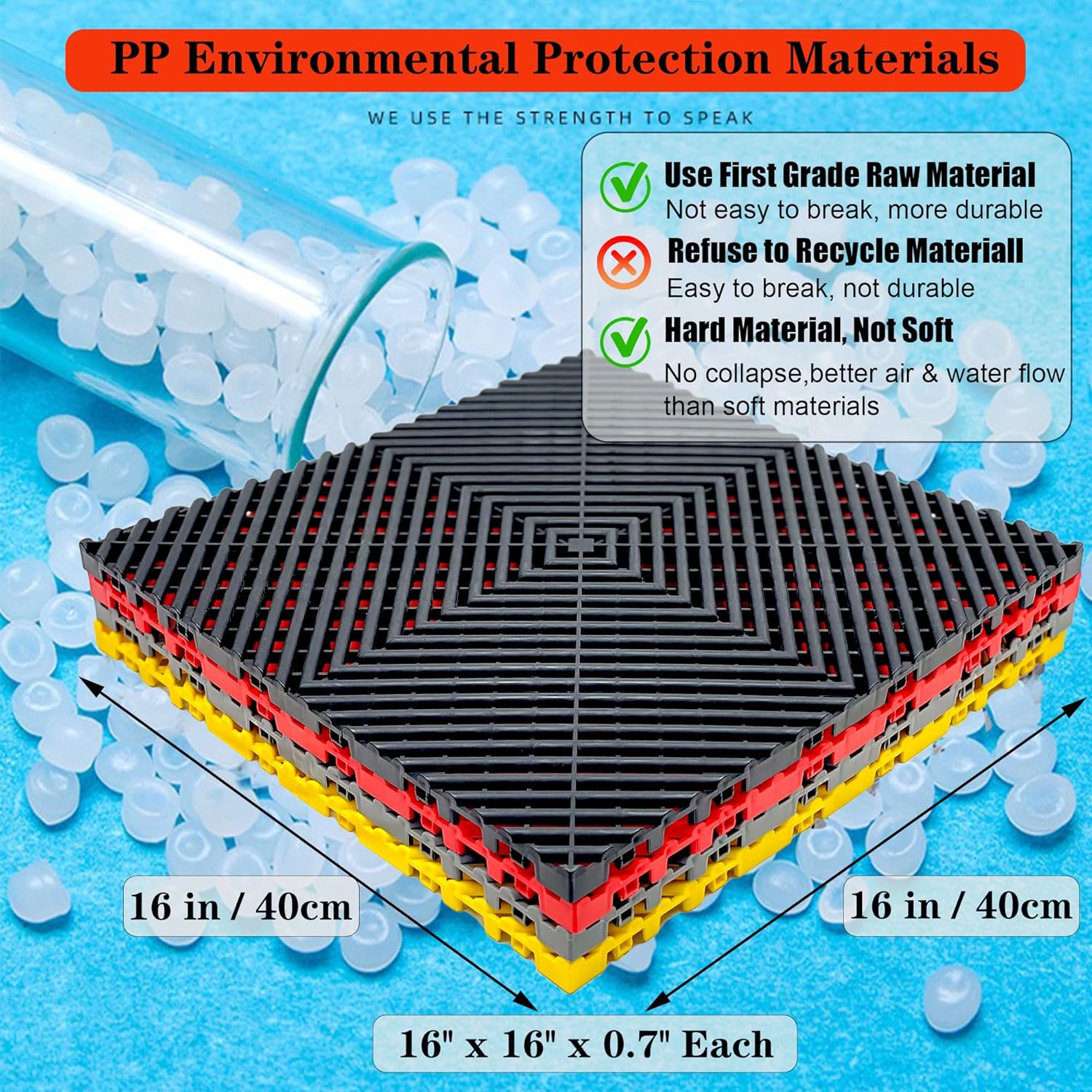 - What You Get:Including 12 durable square drainage mats, each measures 16''L x 16''W x 0.71''H. Total area 20.7 square feet