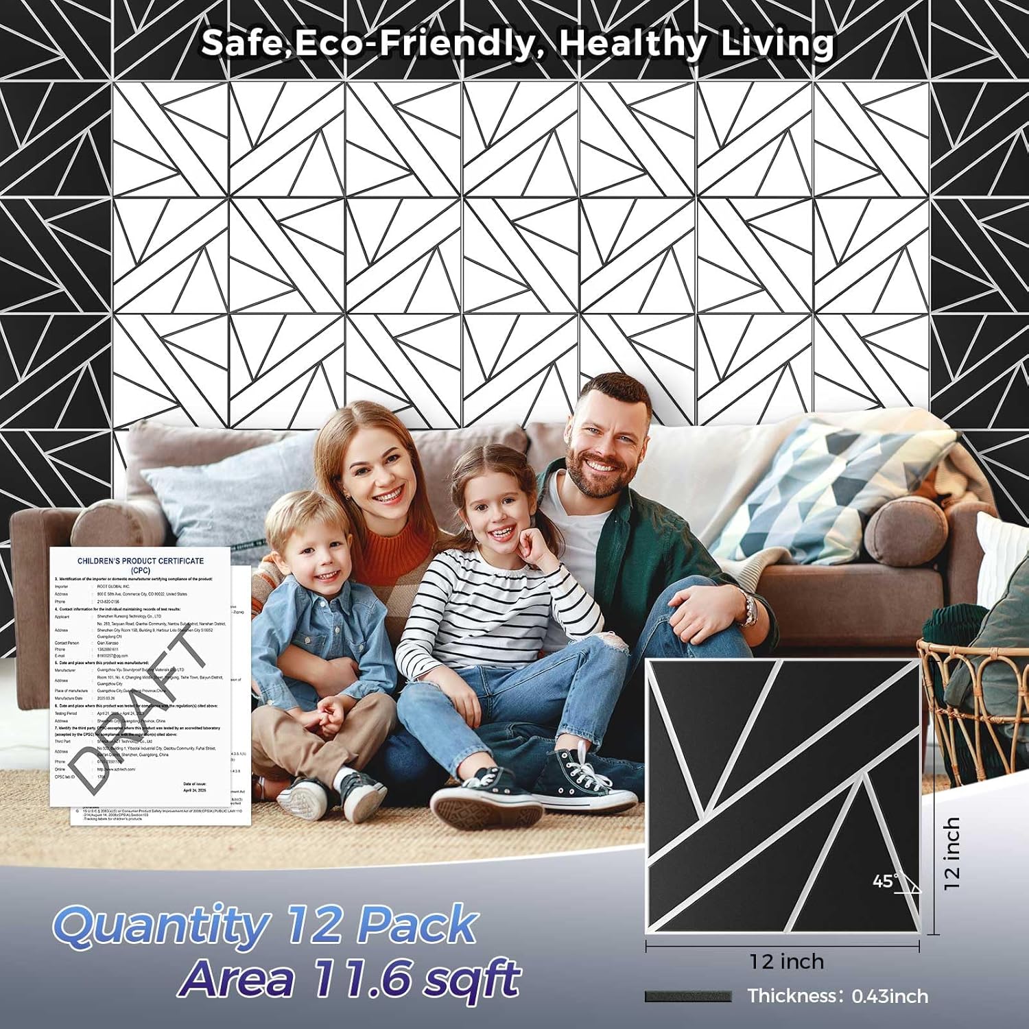 12 Pack 2-Layer Soundproof Wall Panels, 12 x 12 x 0.43 in Sound Proof FoamPanels for Walls, 0.9lb/ft* High Density, Thicker 0.43 in, 3D AcousticPanels,Artistic Noise Dampening Panels Black&White