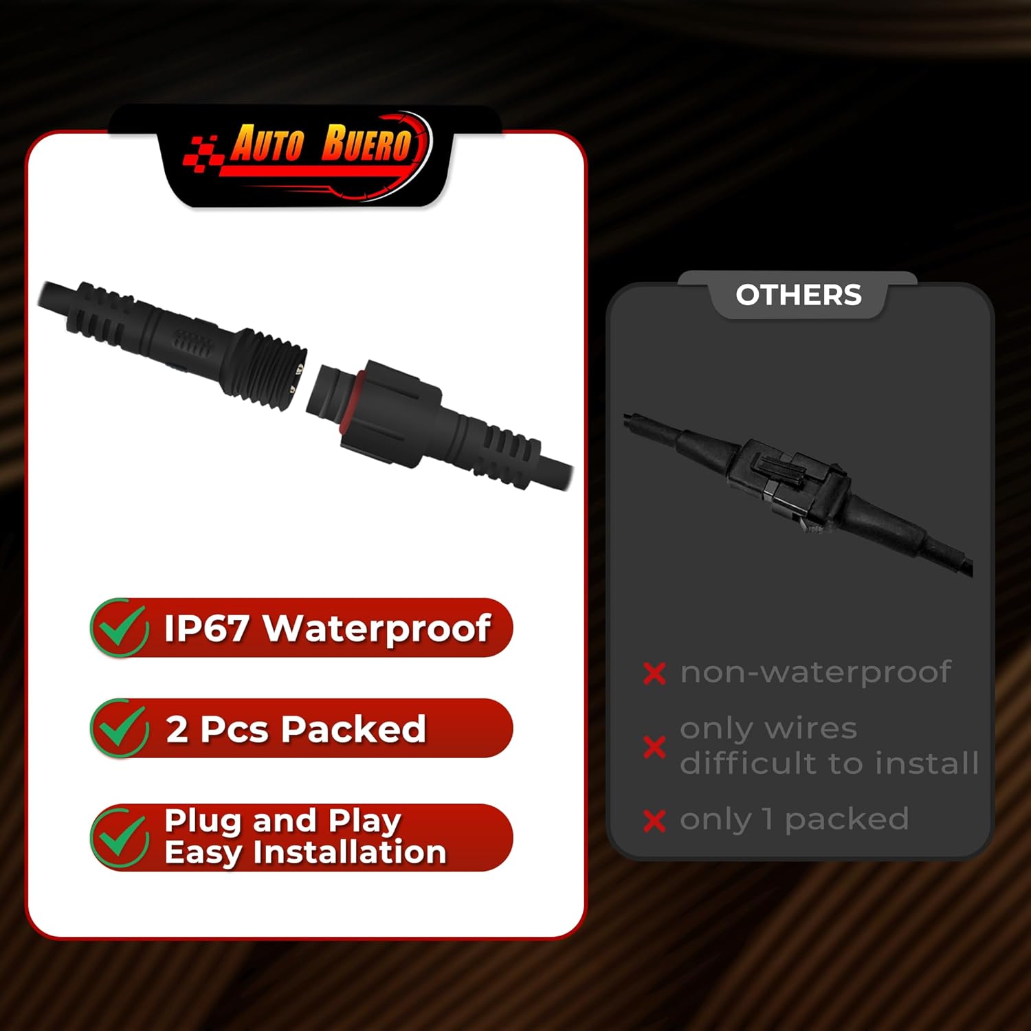 - ăIP67 WaterproofăBuilt in waterproof plug and play connector with a water-tight screw on cap, our truck lights are being able to hold up harsh weather