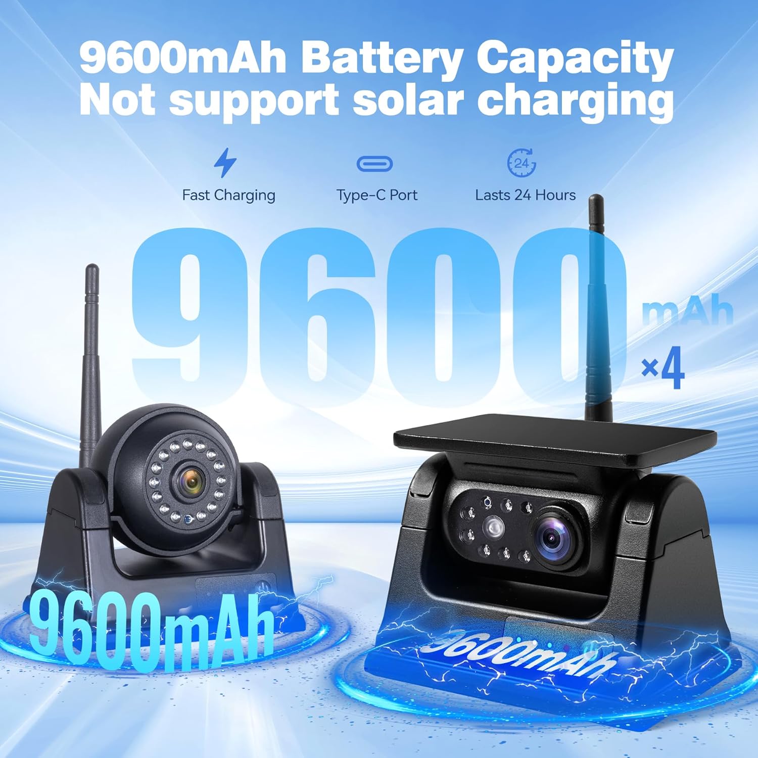 - 【Quad Wireless Magnetic Camera Kit】 Experience ultimate flexibility with our innovative four-camera system - combining long-lasting 9600mAh battery power with featherlight portability. You'll receive three rapid 5V chargers with Type-C cables for convenient recharging anywhere. The smart magnetic mounts make installation as simple as 'stick-and-go', delivering dependable performance whether you're using one camera or all four.