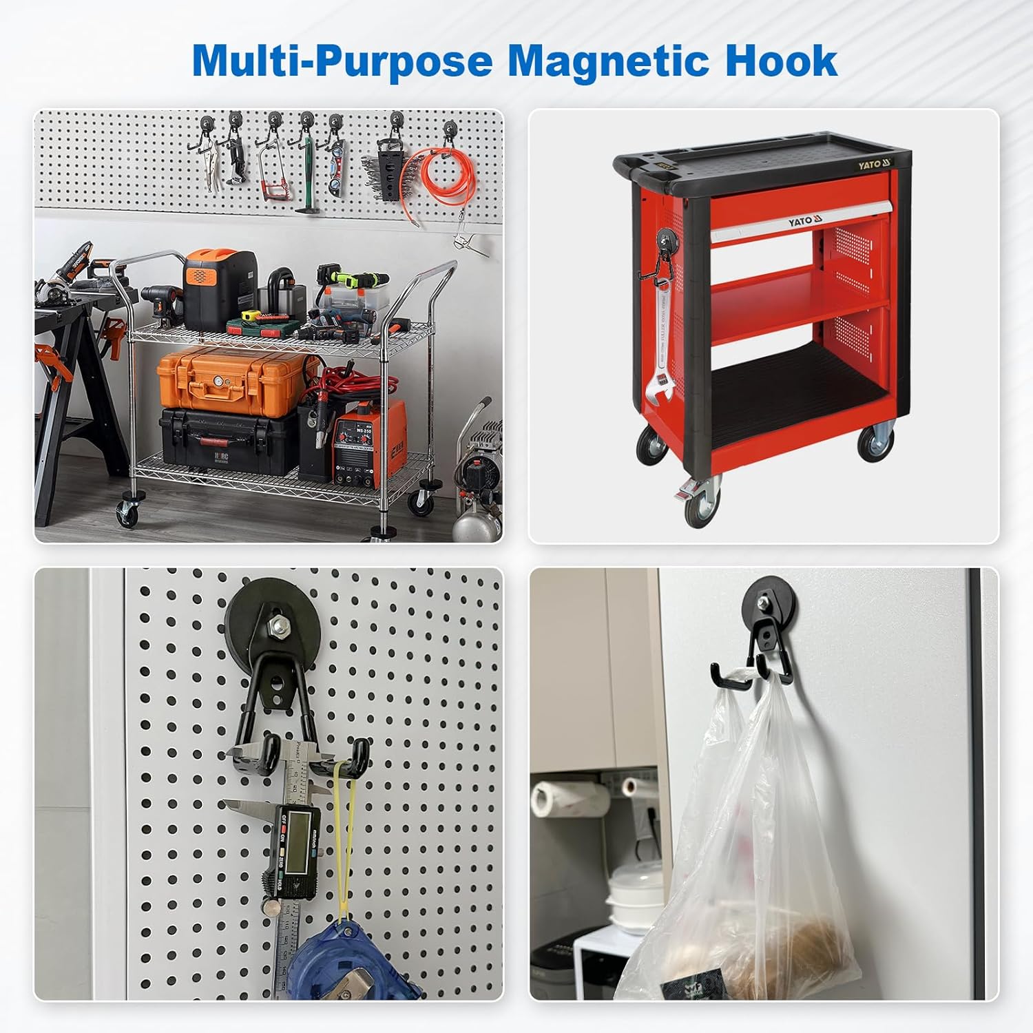 - Space-Saving Design: Free up floor space and keep your tools organized and accessible with these strong magnetic utility hooks, helping to maintain a clean and efficient workspace.