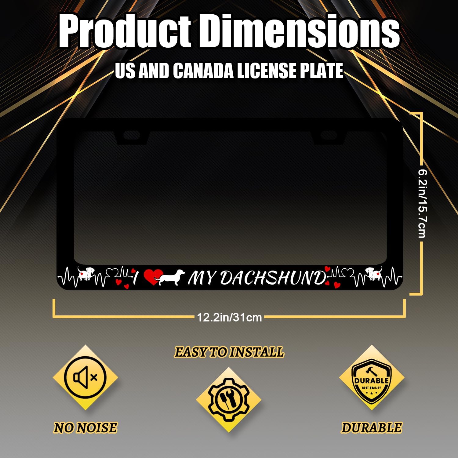 I Love My Dachshund License Plate Frame Animal Dog License Plate Holder Stainless Steel Funny Colorful Car Accessories Decoration 6.3" X 12.3" with 2 Holes Screws
