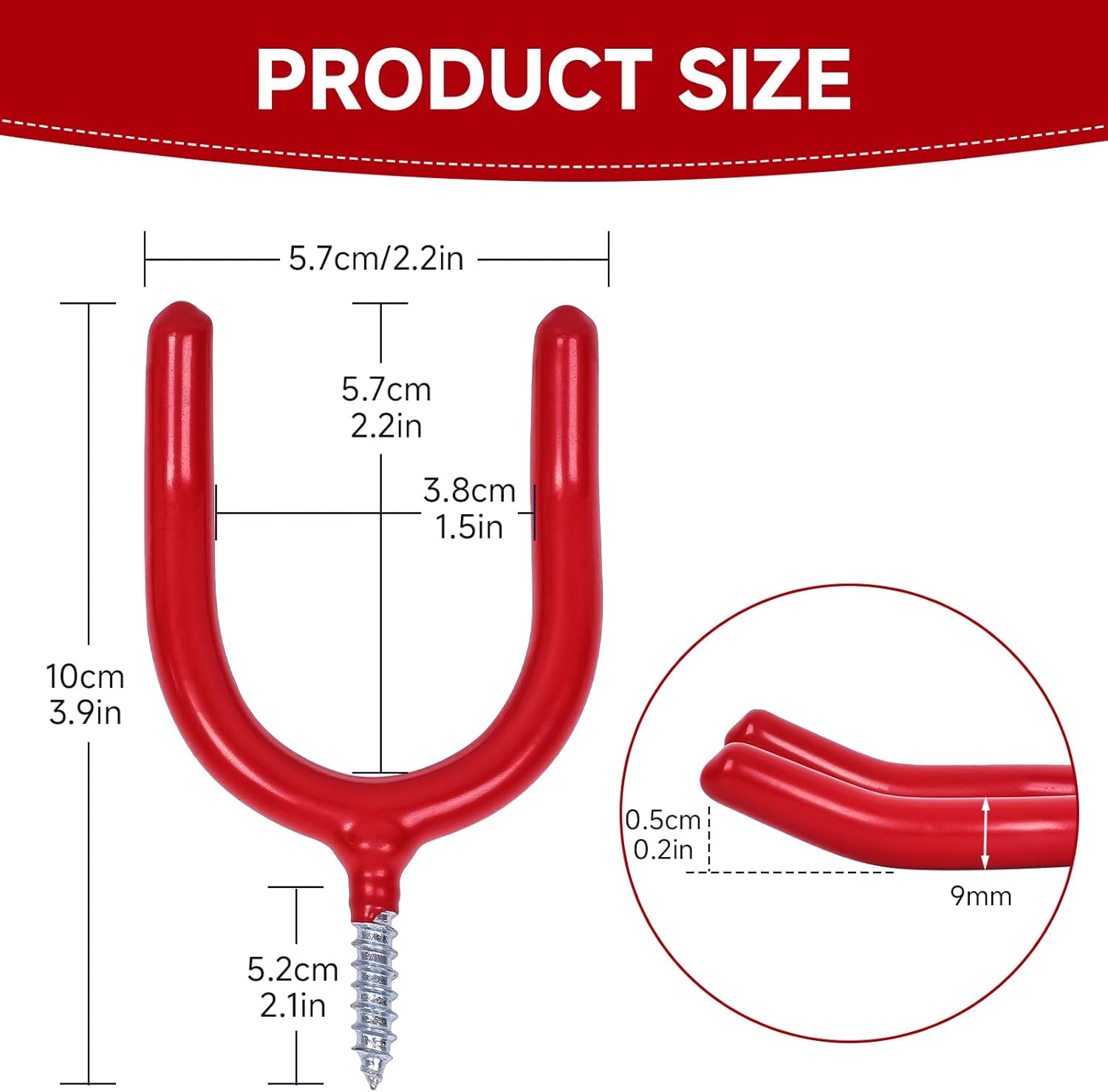 12 Pack Garage Storage System Steel U Hooks with Anti-Slip Coating Home Improvement and Organization Screw in Hooks Easy Wall Mounting Heavy Duty Bike and Ladder (Red, 12 Pack)