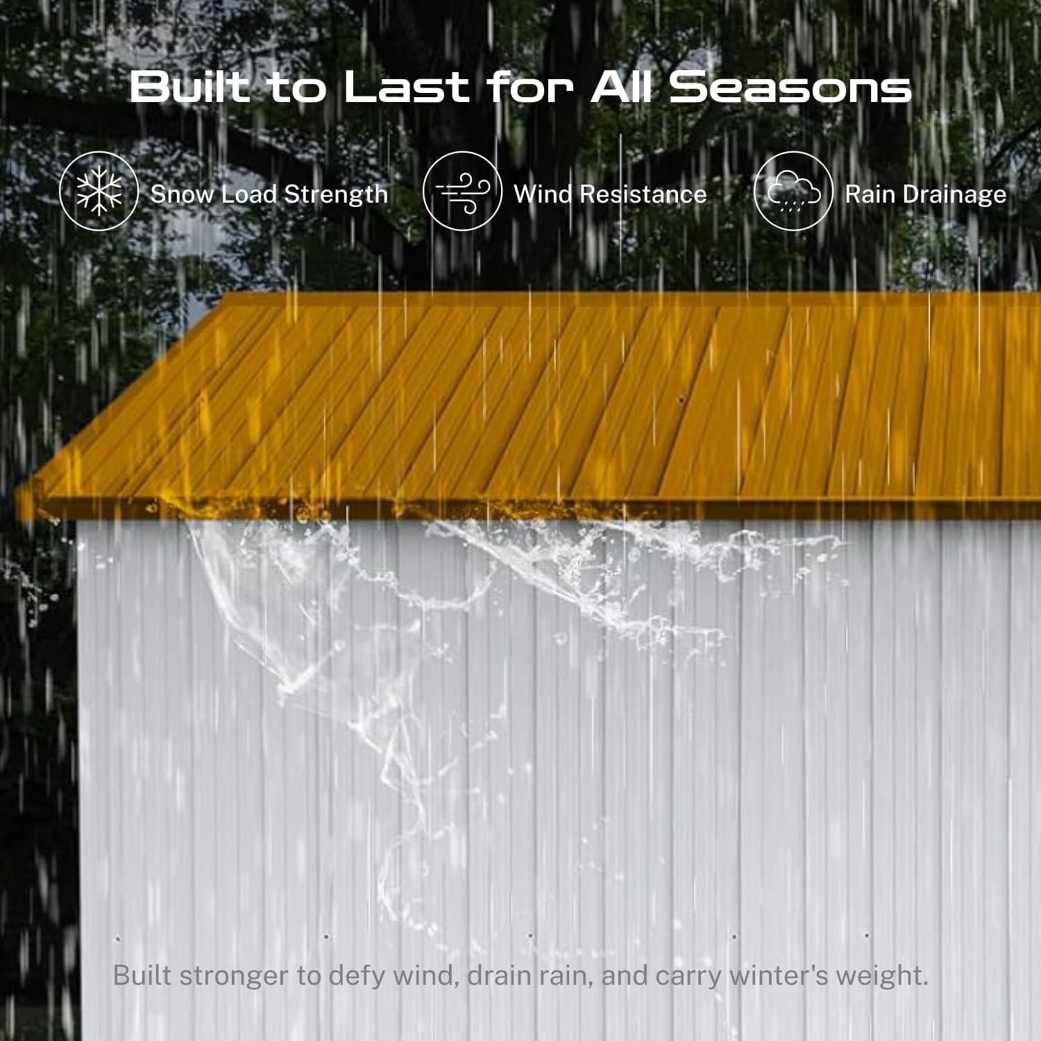 - ā [Sloped Roof for Superior Weather Protection] Designed for real-world conditions, the efficient sloped roof system guarantees optimal rainwater drainage, preventing damaging pooling and leaks. This key feature in our storage buildings and sheds clearance design minimizes maintenance and ensures your tools, equipment, and belongings stay consistently dry inside