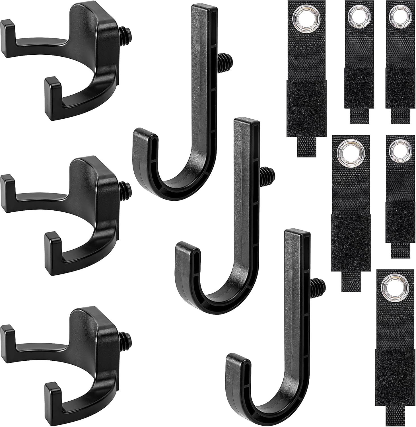 - Hook set:You will receive 3 J-shaped hooks, 3 U-shaped hooks, and 6 extension straps, suitable for most brands of storage sheds, helping you organize your tools and equipment more easily.