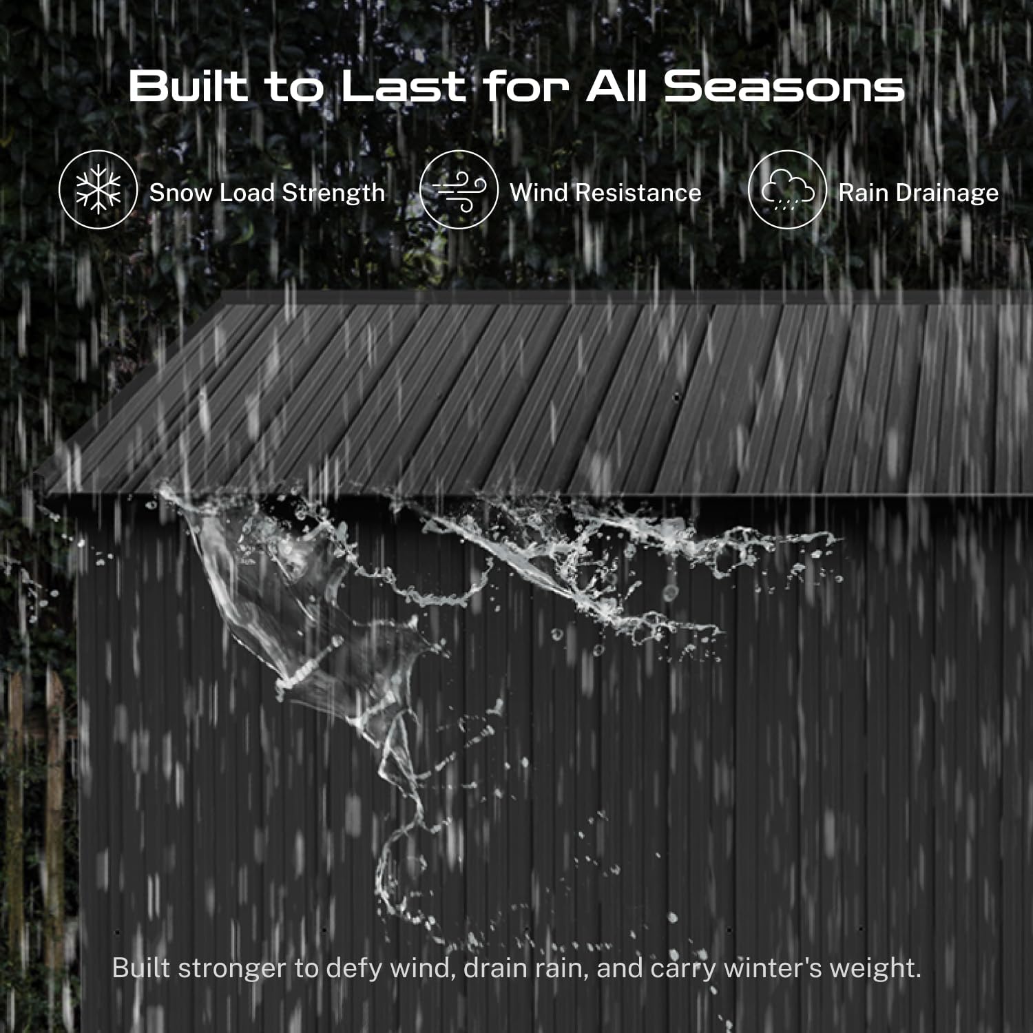 - ā [Sloped Roof for Superior Weather Protection] Designed for real-world conditions, the efficient sloped roof system guarantees optimal rainwater drainage, preventing damaging pooling and leaks. This key feature in our storage buildings and sheds clearance design minimizes maintenance and ensures your tools, equipment, and belongings stay consistently dry inside