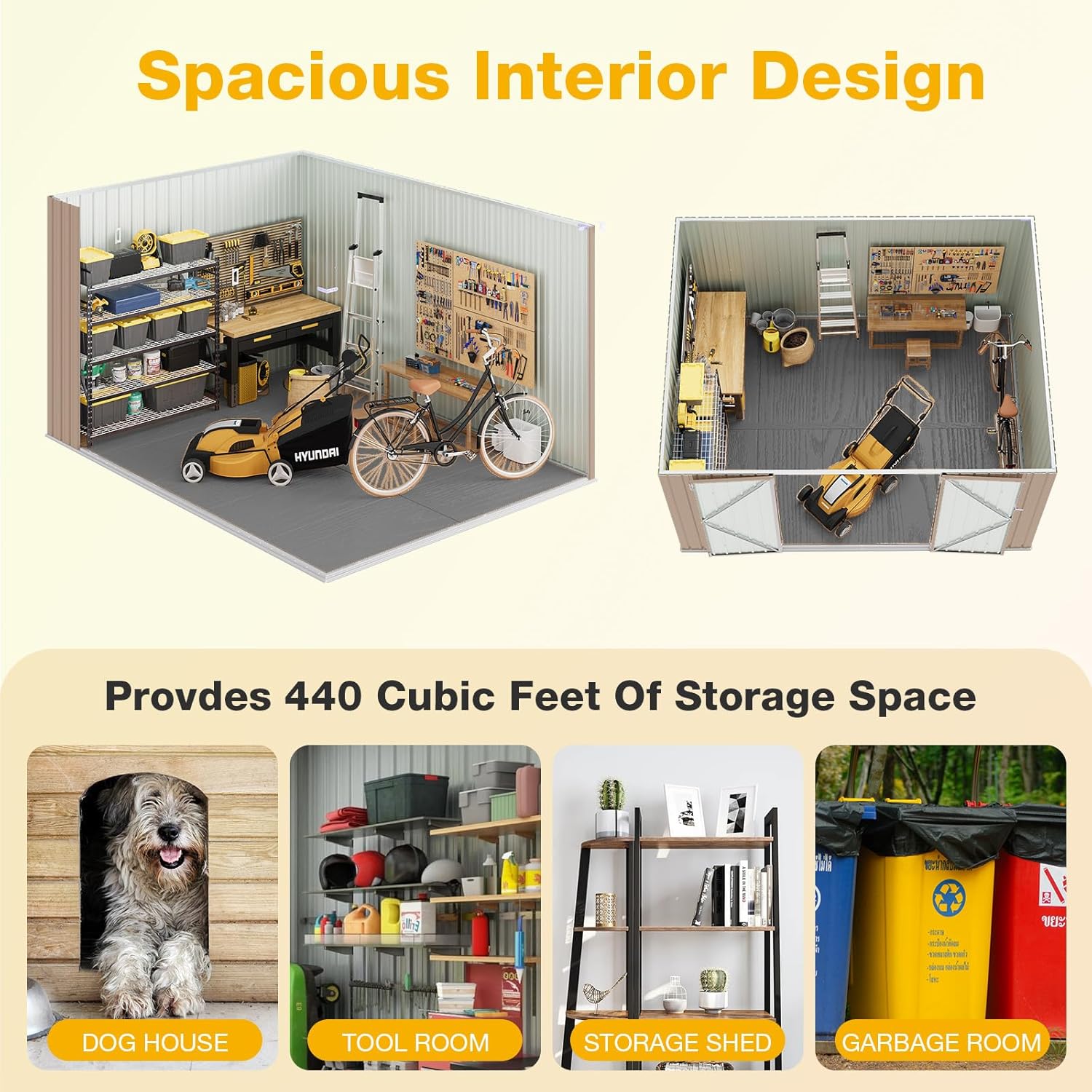 - All-Weather Versatility: Optimize backyard, patio, or driveway storage with this versatile outdoor storage shed. The design accommodates bike storage, tools, generators, and gardening equipment, with vertical space for tall items like shovels or ladders. Ideal as a patio storage solution or garden shed for diverse applications.